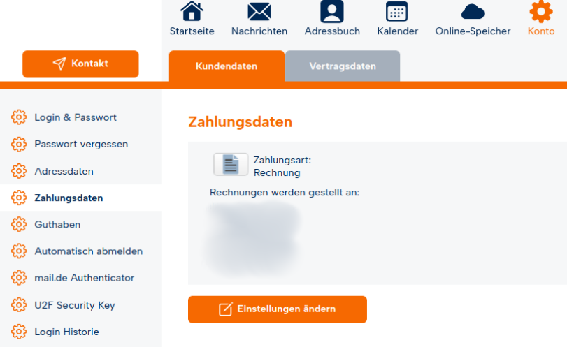 Auf der linken Seite haben Sie jetzt verschiedene Menüpunkte, gehen Sie dort auf den Menüpunkt "Zahlungsdaten".