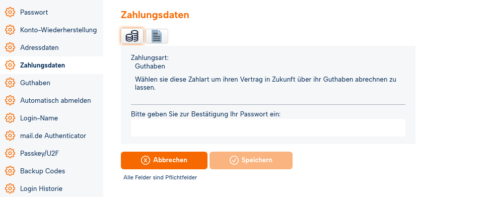 Damit die Änderung wirksam wird, geben Sie zur Bestätigung Ihr Passwort ein und klicken anschließend auf "Speichern".