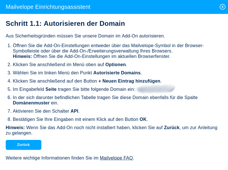 Hinweis: Das manuelle Hinzufügen unserer Domain im Add-On ist nur bei älteren Mailvelope-Versionen erforderlich.