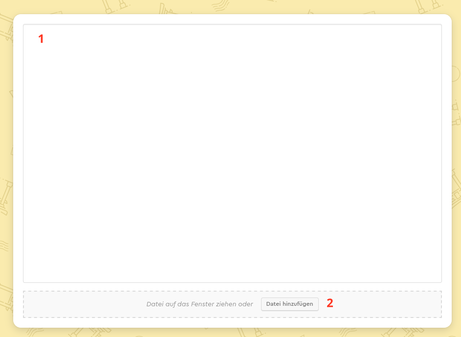 Alle verschlüsselten Inhalte – sowohl der Nachrichtentext als auch eventuelle Anhänge – werden innerhalb des Mailvelope-Iframes (1) eingegeben. Anhänge können Sie dabei direkt im Iframe über die Funktion "Datei hinzufügen (2)" beifügen. Das Erscheinungsbild des Iframes lässt sich in den Einstellungen des Mailvelope-Add-Ons individuell anpassen, sodass Sie jederzeit sicher erkennen können, dass es sich um eine vertrauenswürdige Quelle handelt.